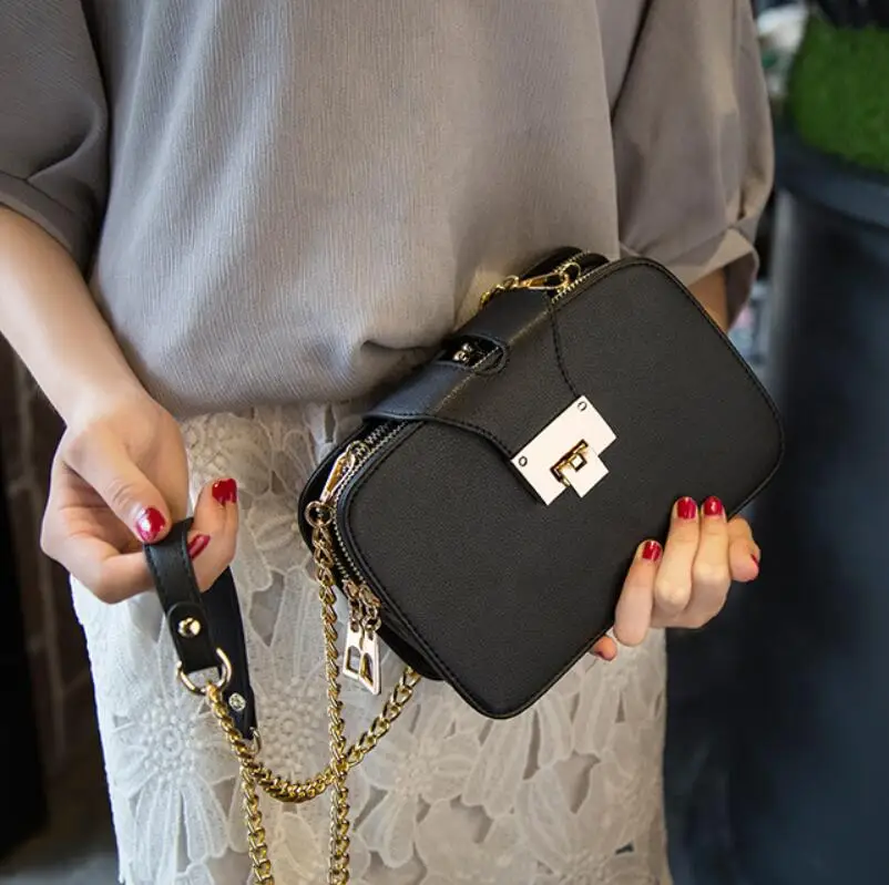 Chain Strap Design (Feature): Sleek metal chain shoulder strap.